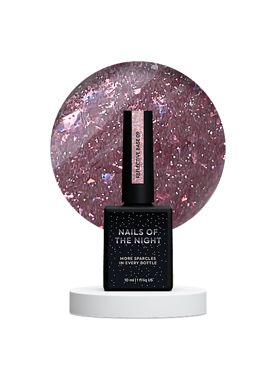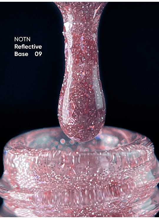 NAILSOFTHENIGHT Reflective Base est une base gel pigmentée avec des particules scintillantes ultrafines. Les paillettes réfléchissantes captent la moindre lumière et offrent un résultat à la fois élégant et éclatant – idéal pour celles qui aiment une touche de brillance, sans en faire trop.