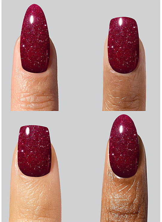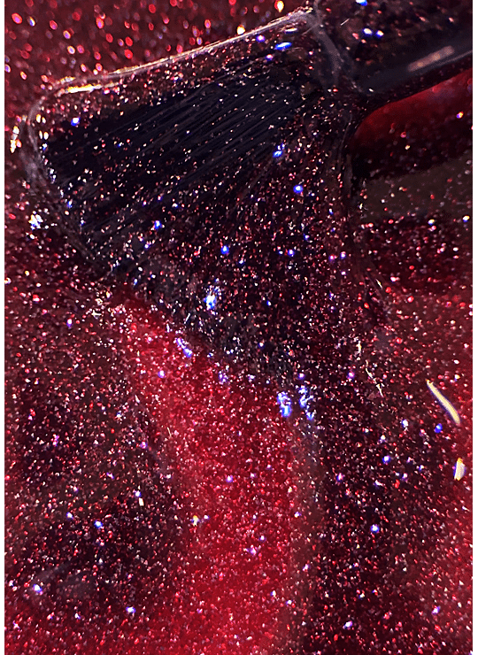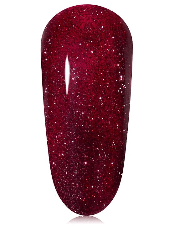 Berry rood met knallende glitter. Zet je feestplaylist maar aan.